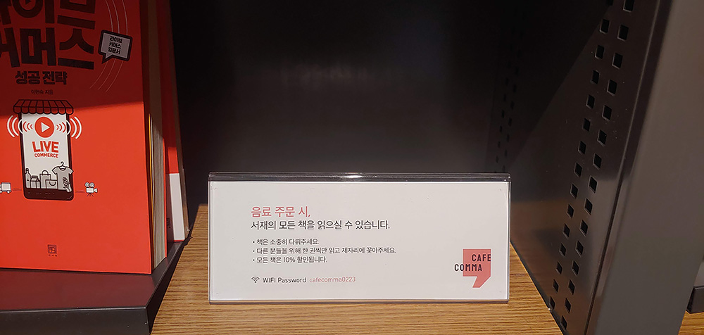 음료를 주문하면 서재의 모든 책을 읽을 수 있습니다. 책 구매도 가능하네요. 10% 할인이 적용된다고 합니다.