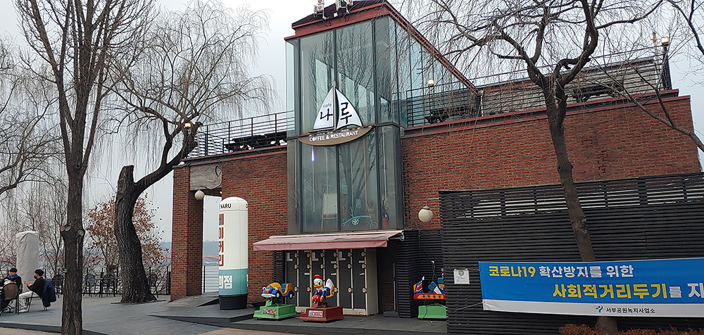 선유도공원을 한바퀴 오른쪽으로 돌다 보면 바로 카페 나루가 나옵니다. 더운 날은 아이스 아메리카노, 추운 날은 따뜻한 차 한잔을 들고 공원을 산책하게 해줍니다.