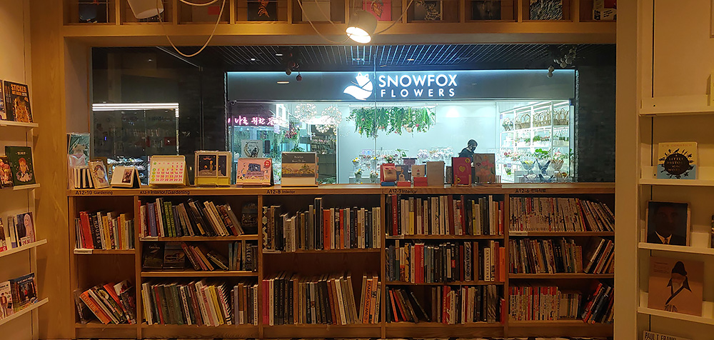 교보문고 창밖으로 스노우폭스 플라워 매장이 보입니다. 양재역에서 강남역으로 걸어갈 때 종종 스노우폭스 매장을 보고 예쁘다고 생각했었는데요. 매장이 늘었네요.