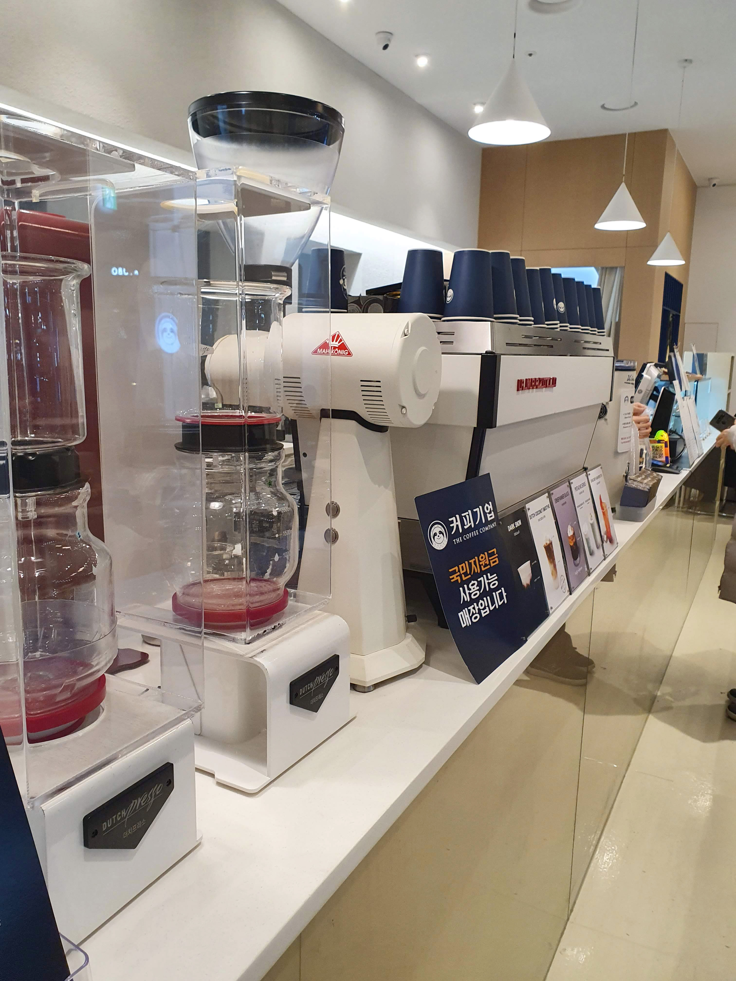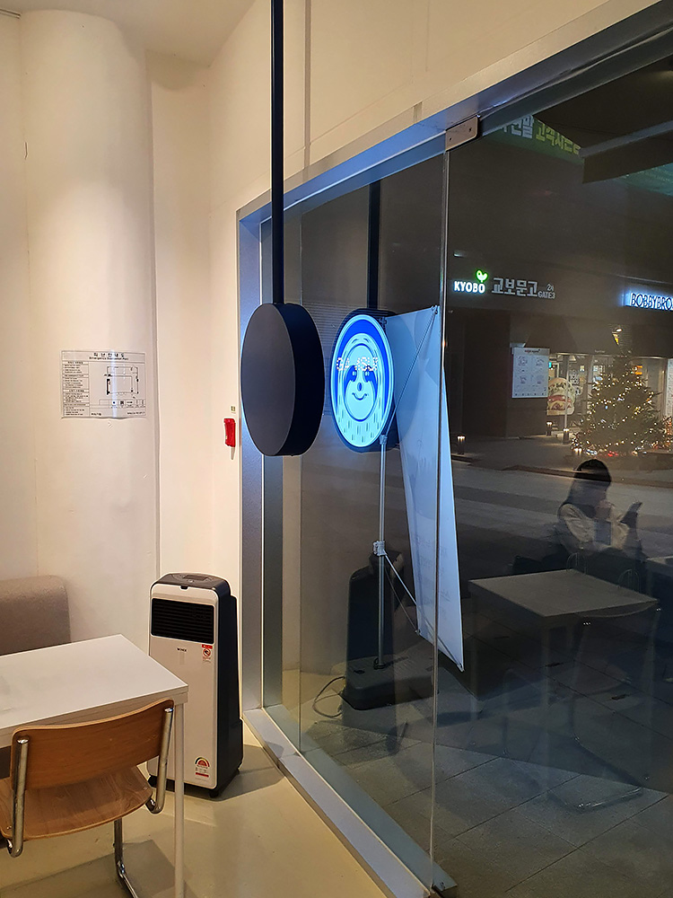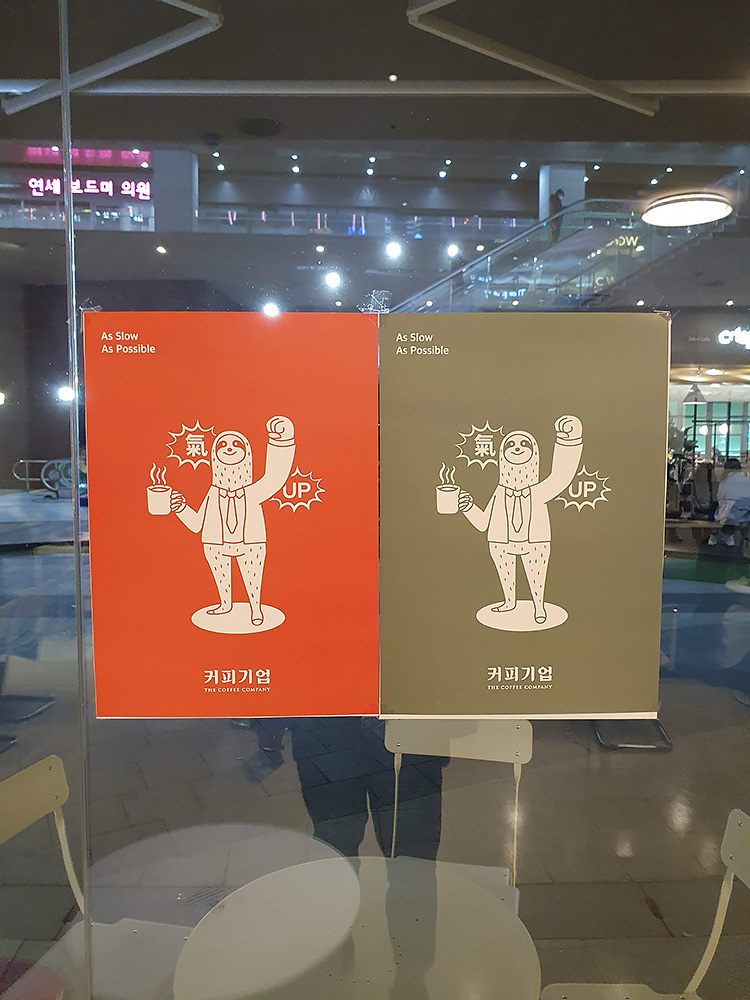 커피기업 창밖으로 교보문고 간판이 보입니다. 커피기업 아이콘은 나무 늘보인가요.