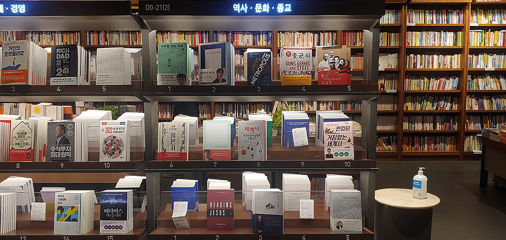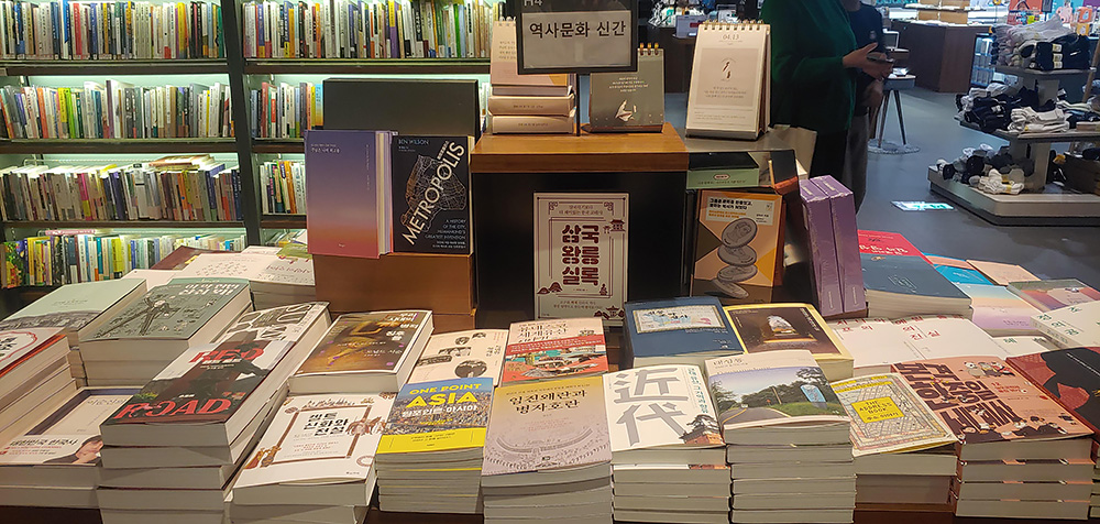 역사 문화 종교 베스트셀러 코너 1위는 유시민 선생의 거꾸로 읽는 세계사입니다. 2위가 황현필 선생의 <이순신의 바다>네요. 3위 <메트로폴리스>도 재미 있어 보입니다. 도시의 역사로 보는 인류문명사라는 부제가 붙어 있습니다.