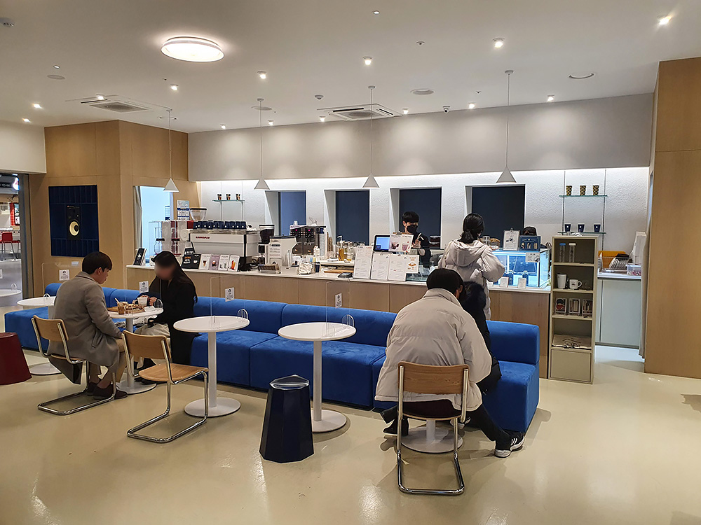 엔데믹 전이라 그런 지 공간 여백이 크고 칸막이가 있습니다.