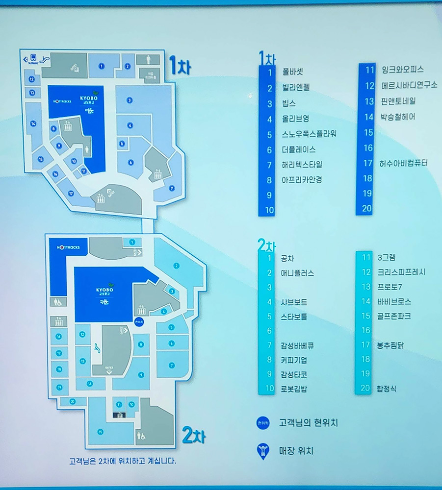 딜라이트스퀘어는 1차와 2차가 통로로 연결되어 있습니다. 교보문고는 2차 건물에 있어요.