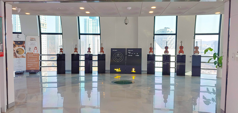 엘리베이터에서 내리면 이렇게 악기들이 전시되어 있습니다. 작년에 카페로 리모델링 되었다고 하네요.