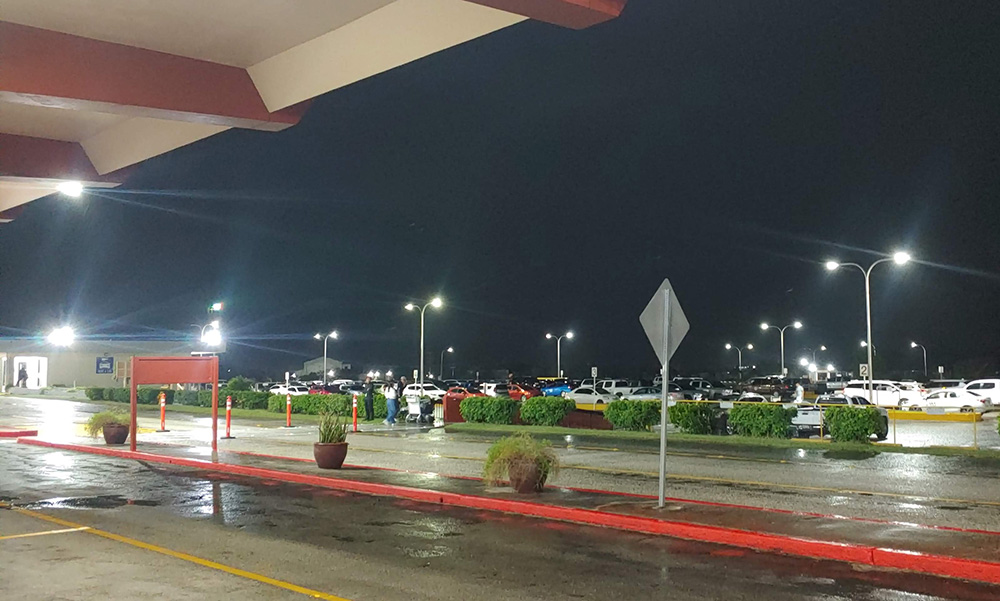 위 사진 왼쪽 끝 하얀 건물이 공항 렌터카 대여점 입니다. 새벽 시간인데도 불이 켜져 있습니다. 주변 주차된 차들 중 상당수는 렌터카로 보입니다.