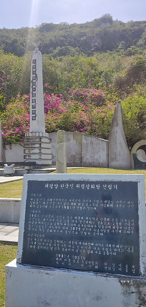한국인 평화 위령탑을 남겨 주신 분들께 존경을 표합니다. 한국이 가난하던 1900년대에도 한민족의 비극에 눈감지 않고 그 희생을 위로할 줄 아는 분들이 있었네요. 이런 분들 덕분에, 세기가 바뀌고 선진국 입구에 선 한국인으로서 사이판을 찾을 수 있지 않았나 생각합니다. 어려운 시기 희생하고 이끌어 주신 선조 분들께 감사합니다.