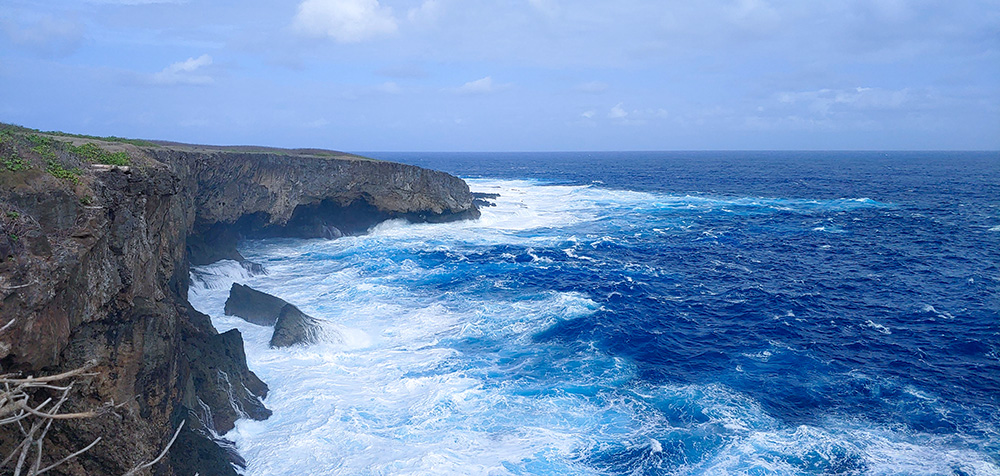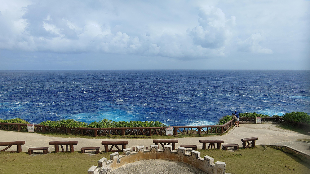 만세 절벽 앞 펼쳐 진 태평양 바다 속에는 마리아나 해구가 있습니다. 마리아나 해구의 별명 중 하나가 지구의 바닥이라고 합니다. 마리아나 해구는 최대 수심이 1만1092m로 지구에서 가장 깊습니다. 해수면을 기준으로 역으로 가면 성층권에 도달할 만한 거리라니 경이롭습니다.